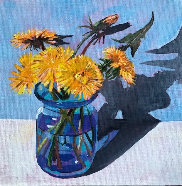 I truly cannot pin point a single event or time when I started painting. I learned about DPW probably through Pinterest and was intrigued. I bought Carol’s book Daily Painting and was inspired. Because I was working it was difficult to carve out time to paint every day, but fortunately I am a morning person, so I started using that time for painting and experimenting. My father was a commercial artist who worked out of a studio in our house. He was the original Mr. Mom working from home and taking care of four kids while my mom worked as a nurse. We always had markers, paint, rubber cement and canvases to play with, but none of us followed in his footsteps. Actually until I started painting myself, I never fully appreciated his amazing talent, which is sad. Now I wish he were here to guide me and answer questions, sometimes I think he is doing just that, only remotely.
